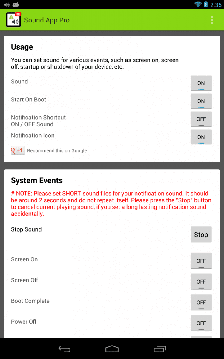 Звук приложения Эта программа позволит вам настроить уведомления о различных системных событиях на вашем Android-устройстве. Программа работает в фоновом режиме и проверяет наличие системных уведомлений, а затем дает вам знать о них при помощи звукового сигнала. Вы можете настроить разные звуки для всех типов уведомлений, что позволит быстро определить тип системного события, не глядя на экран.